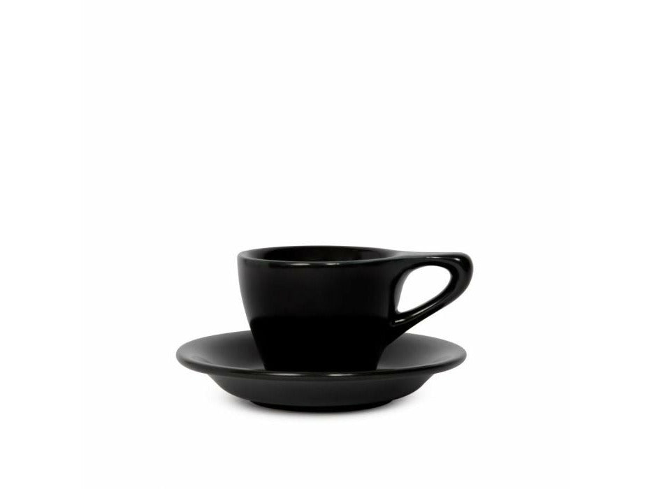 Fine porcelain• Dishwasher- and microwave-safe• Volume: 3 oz. (89 ml)• Cup: 2.0” H x 3.75” W• Saucer: 4.75” diameter