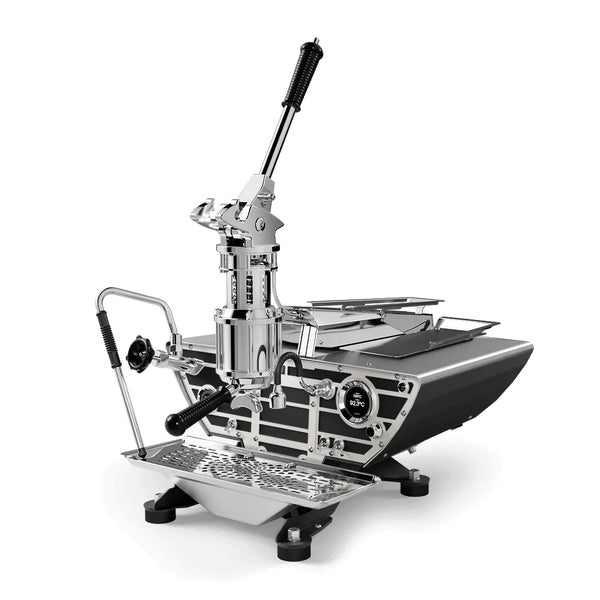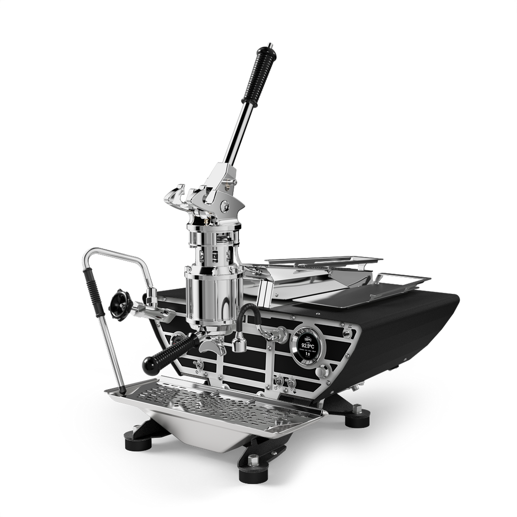 Our approach is to create an exact water temperature and then make sure it does not lose any heat on its way to the coffee puck. Coffee boiler and group are one large piece, temperature is PID controlled. The Idrocompresso’s cylinder with piston sits inside the group and is fully surrounded by a generous amount of the very same water that will flow into the chamber when pulling the lever. The bottom of the piston is made in PEEK. This is fully heat neutral, so the water does not lose any of its heat and the piston does not become dirty.